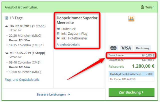 - Hin-/Rückflug nach Colombo (je 1 Stopp in Muscat)